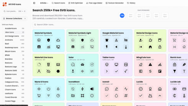 25万個以上のアイコンを無料で検索「All SVG Icons」