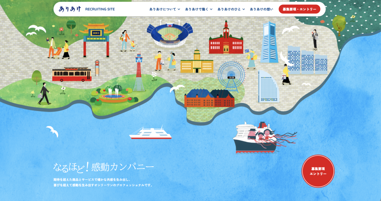 サイトの色使いで目を惹き、写真選びも明るく親しみやすいトーンなので、応募者に共感を呼び起こす採用体験を提供しています。