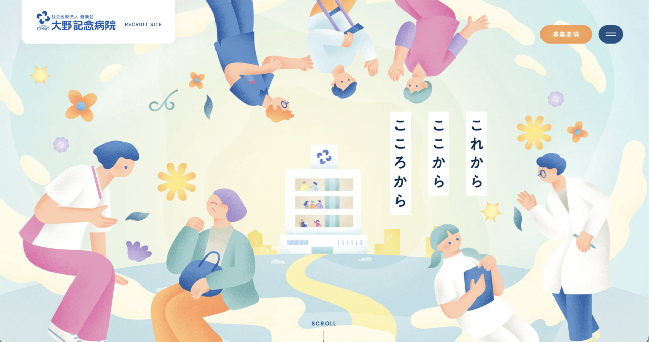 医療現場という繊細な分野でも、“温かさ・信頼感・未来性”を打ち出した採用サイトです。