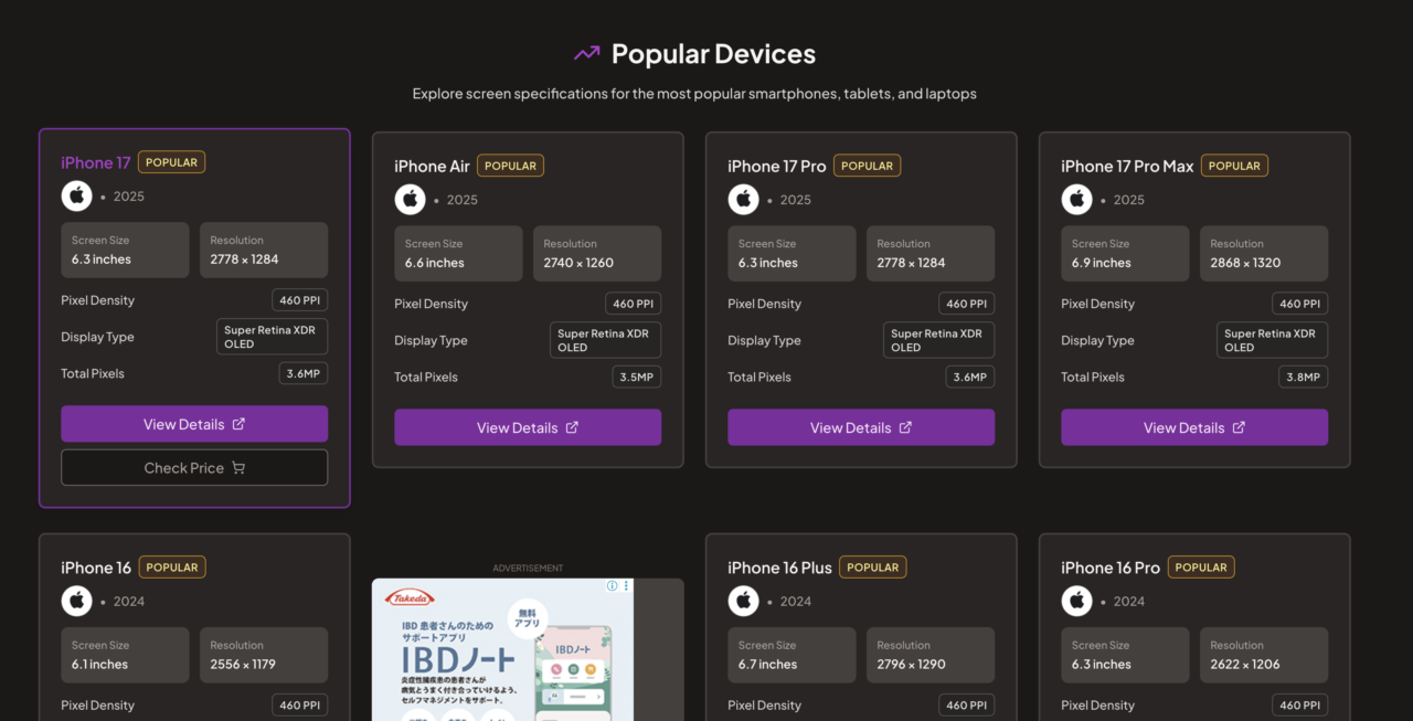 そこで今回は、さまざまなデバイスのスクリーン仕様をまとめて確認できる便利なサイト「What Is My Screen Size?」を紹介します!